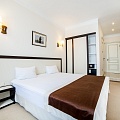 Однокомнатный номер, с одной двуспальной кроватью. В номере есть все необходимое для полноценного комфортного отдыха. Наполнение каждого номера включает: 1 односпальная кровать; Холодильник, чайник, кондиционер, сейф; Шкаф, столик, стул; ЖК телевизор; Телефонная связь; В номере ванная комната, с необходимыми одноразовыми принадлежностями, одноразовыми тапочками, набором полотенец, халатом. Электронный замок и карточка-ключ. Комплимент от гостиницы – чай, кофе. |